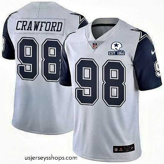Indulge in the luxury of this exquisite Alluring Nike Cowboys 98 Tyrone Crawford White Stitched With Established In 1960 Patch NFL Limited Rush Jersey engineered to ensure you radiate team pride like never before! Boasting Football jersey, NFL jersey, Limited edition jersey, it’s an absolute must – have for die – hard fans.
