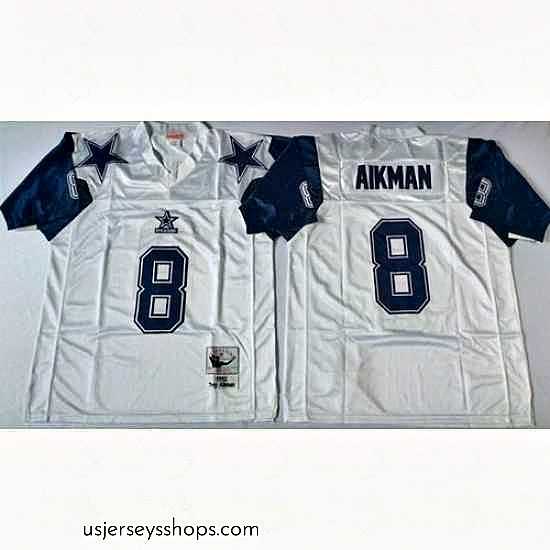 Glamorous Mitchell Ness cowboys #8 Troy Aikman white Throwback Stitched NFL Jersey tailored to provide maximum comfort during those intense game moments