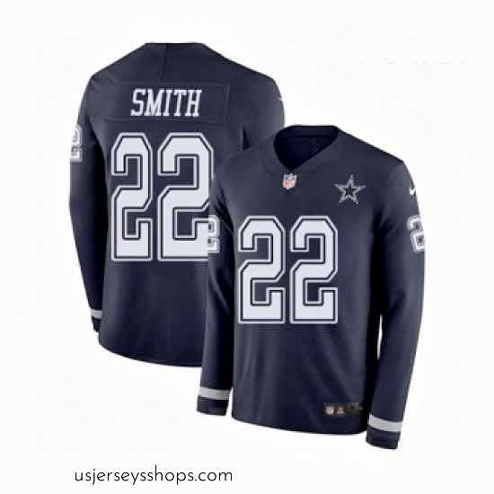 Glamorous Nike Dallas Cowboys 22 Emmitt Smith Limited Navy Blue Therma Long Sleeve NFL Jersey