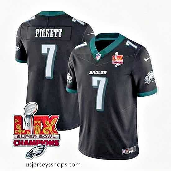Glamorous Philadelphia Eagles 7 Kenny Pickett Black 2025 Eagles Logo Super Bowl LIX Patch New F.U.S.E Vapor Limited Stitched Football Jersey meticulously crafted to become the centerpiece of your sports memorabilia