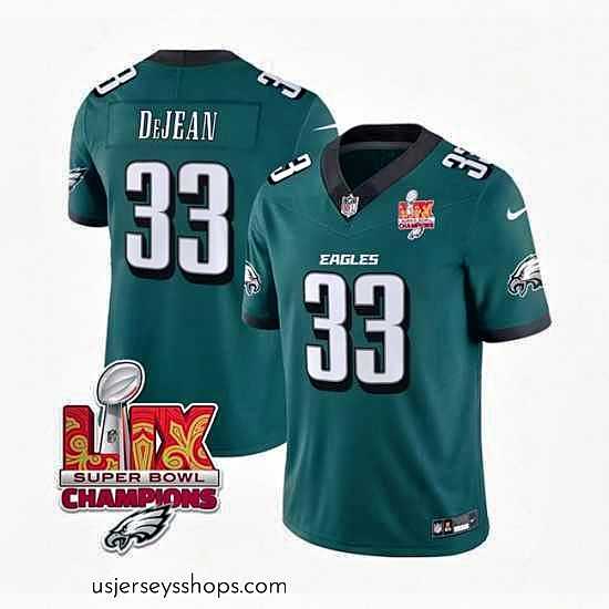 Magnificent Philadelphia Eagles 33 Cooper DeJean Green 2025 Eagles Logo Super Bowl LIX Patch New F.U.S.E Vapor Untouchable Limited Stitched Football Jersey