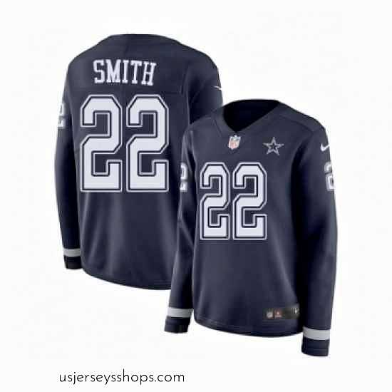 Sensational Womens Nike Dallas Cowboys 22 Emmitt Smith Limited Navy Blue Therma Long Sleeve NFL Jersey