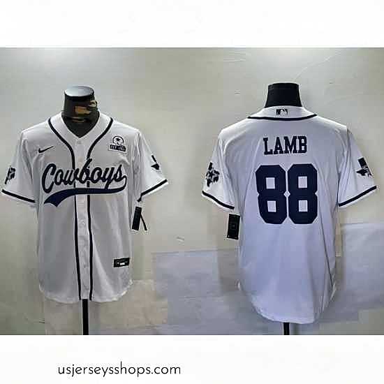 Stellar Dallas Cowboys 88 CeeDee Lamb White 2022 Olive Salute To Service Cool Base Stitched Baseball Jersey 6