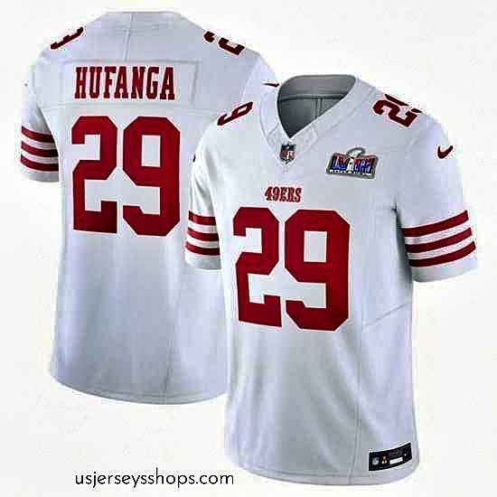 Stellar San Francisco 49ers 29 Talanoa Hufanga White 2023 F.U.S.E With John Madden Patch Vapor Limited Stitched Football 2024 Super Bowl LVIII Jersey