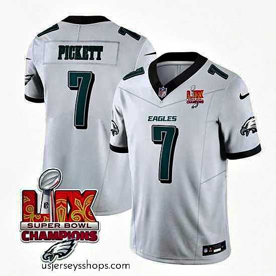 Experience the thrill of this outstanding Stunning Philadelphia Eagles 7 Kenny Pickett White 2025 Eagles Logo Super Bowl LIX Patch New F.U.S.E Vapor Limited Stitched Football Jersey guaranteed to turn heads and spark envy among fellow supporters! Boasting Stitched jersey, Game – day apparel, Super Bowl related, it’s an absolute must – have for die – hard fans.